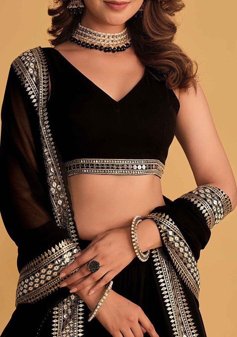 Black Sequin Embroidered Faux Blooming Lehenga Set