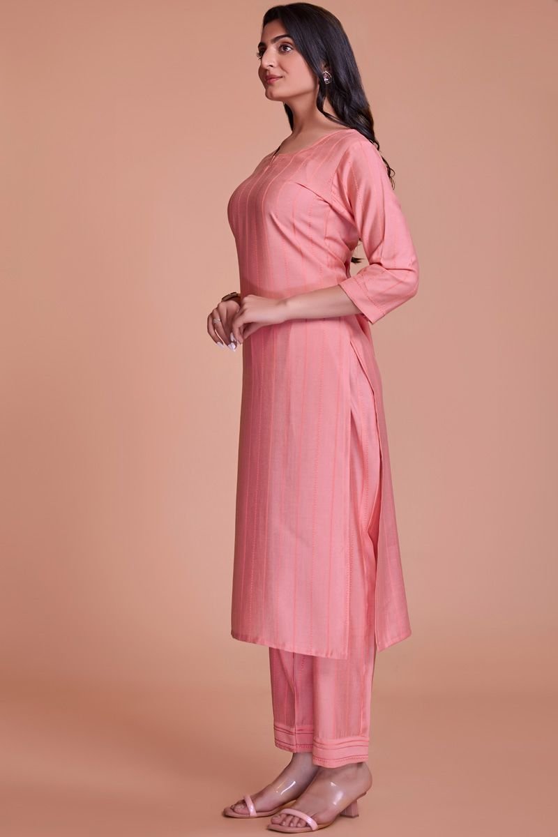 Charming Peach Color Viscose Fabric Readymade Kurti With Pant