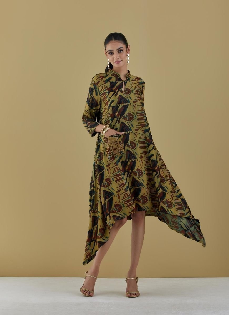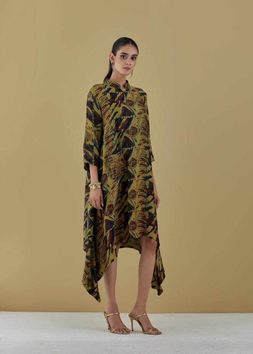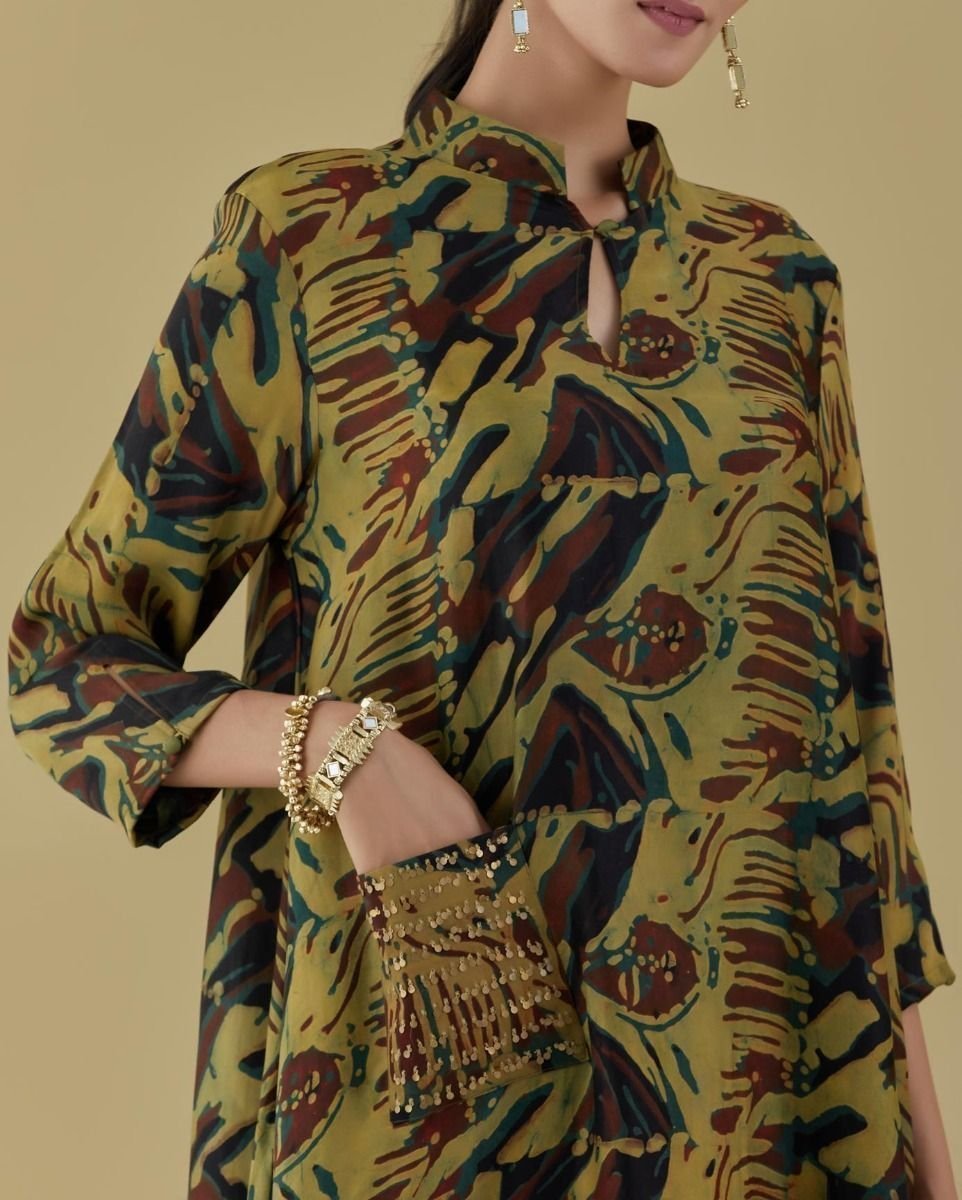 - Heena green tunic with coin embroidered pocket