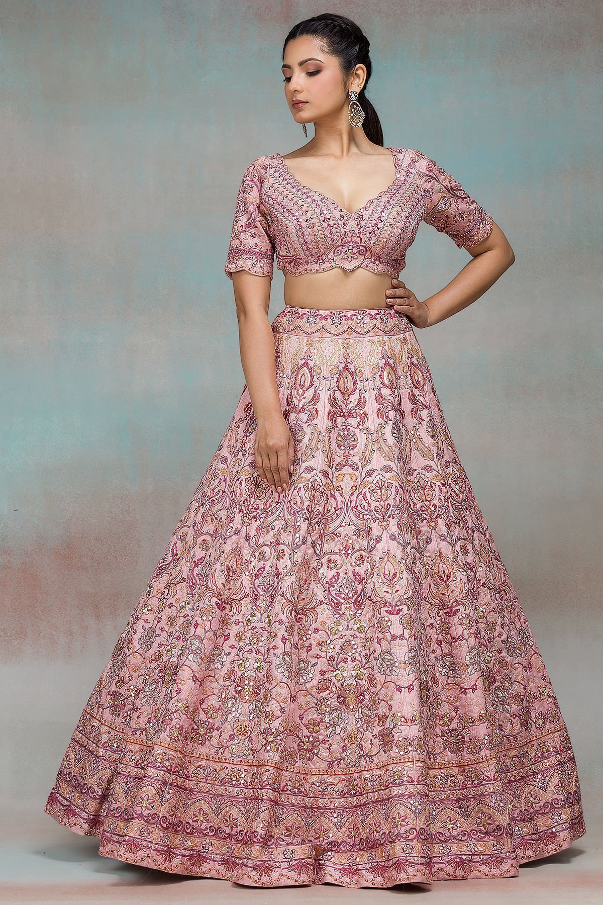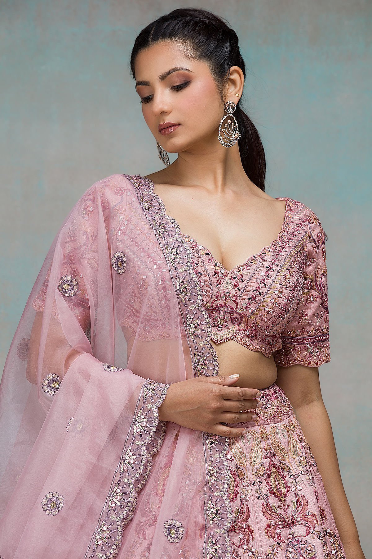 | Lehenga Work : | Mirror, Resham, Sequins, Pearl & Zari Work |